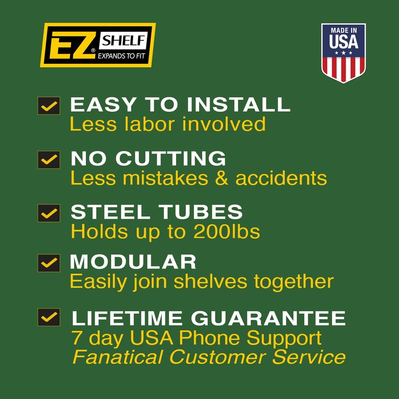- EASY INSTALL (NO CUTTING) – INSTANTLY ADD MORE STORAGE SPACE: Closet Organizer & Storage Shelf. EZ Shelf’s revolutionary closet shelf system is Expandable, Easy to Install, Strong and Looks Great with a Lifetime Guarantee. Improve your bedroom storage & organization and increase your available space in minutes!