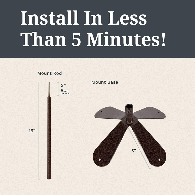 - Easy Installation – Installs in less than five minutes! Topper designs are interchangeable to easily customize for every season or occasion. Other mounting types can also be swapped, with options for a roof, garden stake, deck, or wood post.