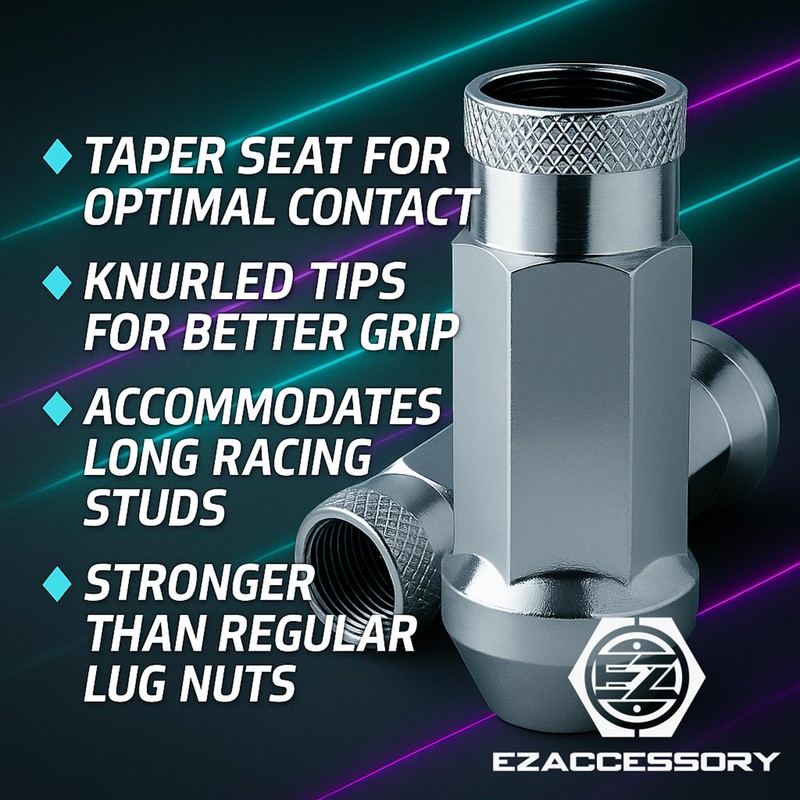 EZAccessory 14x1.5 Extended Tuner Lug Nuts 24 Pcs+Key Chrome Racing Open End for GMC 1500 4WD 1988+ Denali 1998+