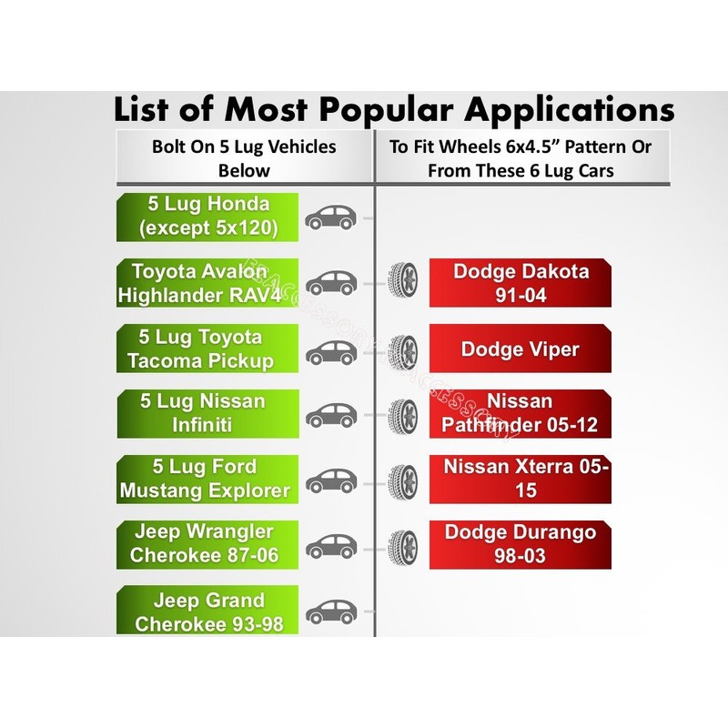 • 【Purpose】Convert from 5 lug vehicle to 6 lug wheel, meaning putting 6 lug wheels on 5 lug vehicle