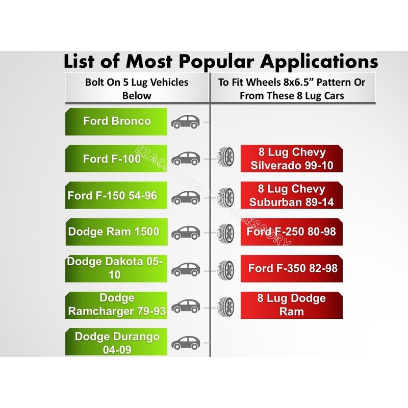 - Convert from 5 lug vehicle to 8 lug wheels
