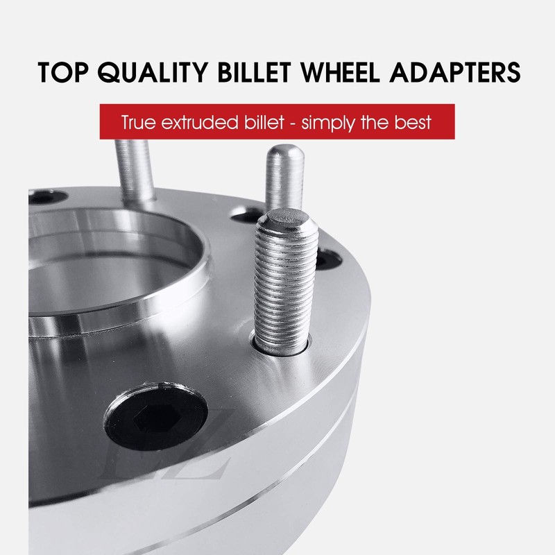 These two piece conversion type wheel adapters are used to convert 5 lug 135mm bolt pattern hub to fit wheels of 6 lug 5.5" bolt pattern. Adapters are built with 87mm hub centric lip. If your wheels have 78mm bore, they will be centered on the lip for a factory fit. They will space out your wheels for 2-inch. Check to make sure you have enough clearance. CNC machined with precision craftsmanship using 6061 T6 aerospace quality billet, featured in high load capacity and corrosion resistance. High quality studs are pre-installed. Sold as a pair for 2 wheels. Order 2 pairs for all 4 wheels.