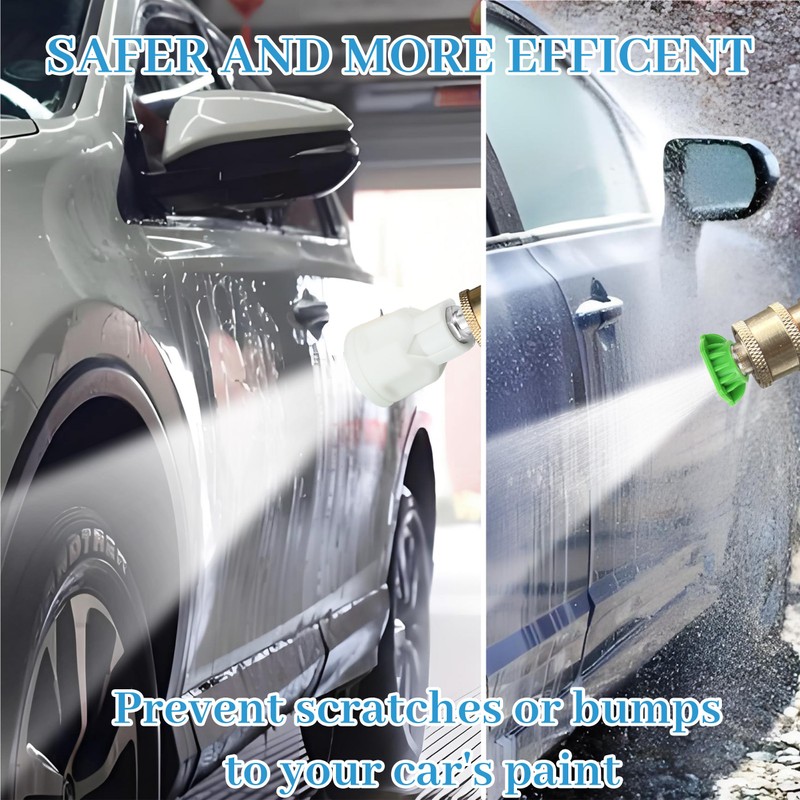 Upgraded Protection for Safe CleaningThe pressure washer nozzle guard feature a durable rubber protective cover that shields them from impacts, damage, and wear during use, while preventing scratches on car paint. Power washer nozzle protector also reduces water splash-back, making the cleaning process smoother and more efficient.