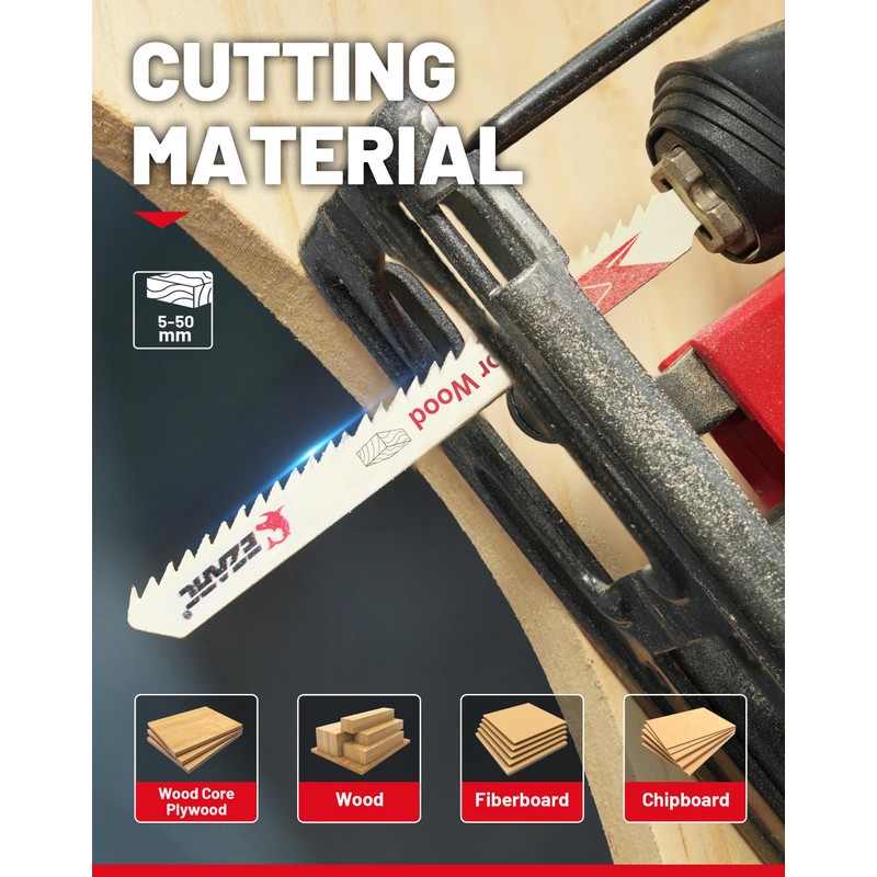 - Fast wood cutting: EZARC jigsaw blades have efficient 6TPI saw teeth that ensure fast wood cutting. The sheets help you significantly improve work efficiency and save time and labor costs.