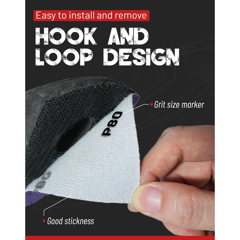• 【Hook & Loop Backing】With hook and loop backing, EZARC triangle sanding pads are easily removable and replaceable. Compared to other brands' A-paper discs, our unique C cloth backing boosts flexibility and strength, increasing tear resistance threefold