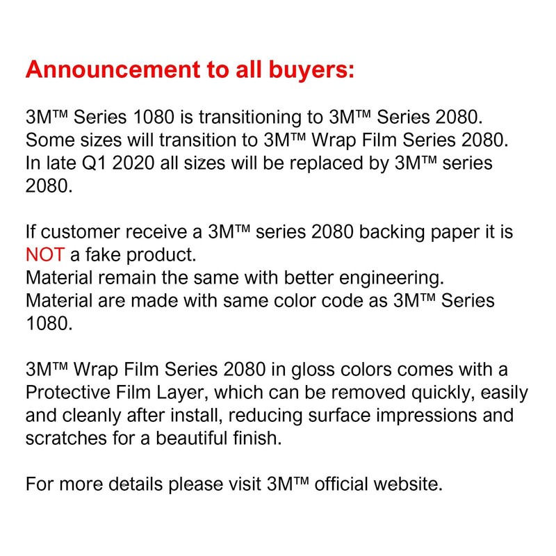 - New 3M Wrap Film Series 2080! On all gloss films is a protective film layer that can stay on during installation to help reduce surface impressions and scratches. Remove the protective film layer after your installation is complete.