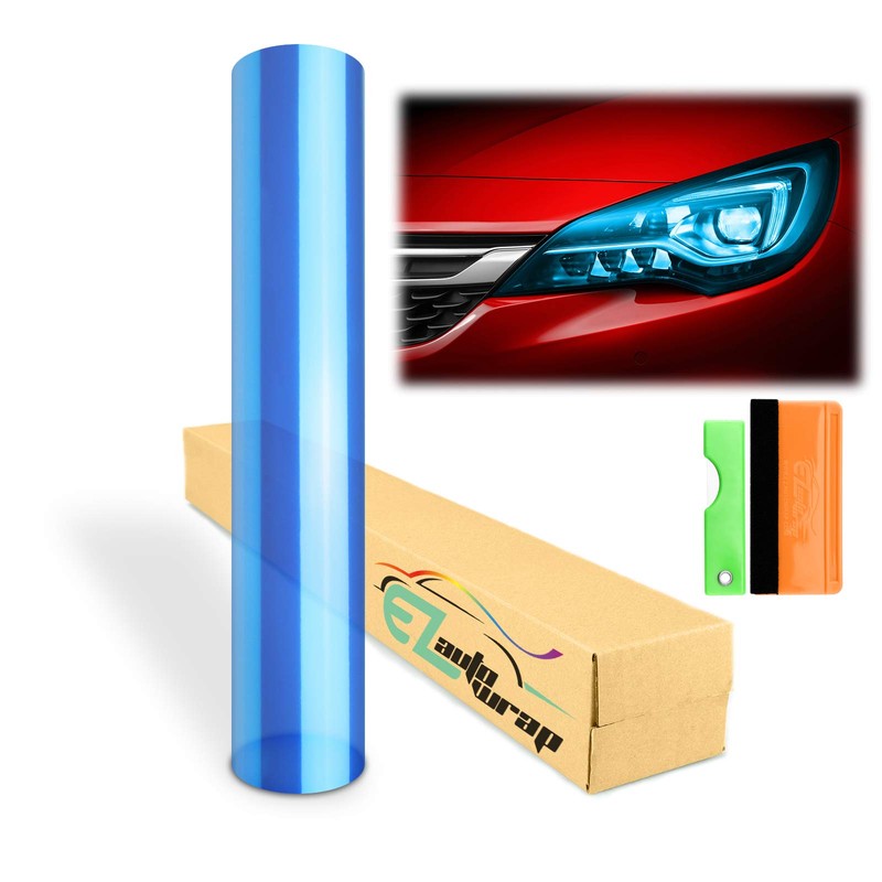 EZAUTO WRAP Free Tool Kit 12"x108" (1FT x 9FT) Glossy Dark Blue Headlight Taillight Fog Light Side Marker Vinyl Tint Film Self Adhesive