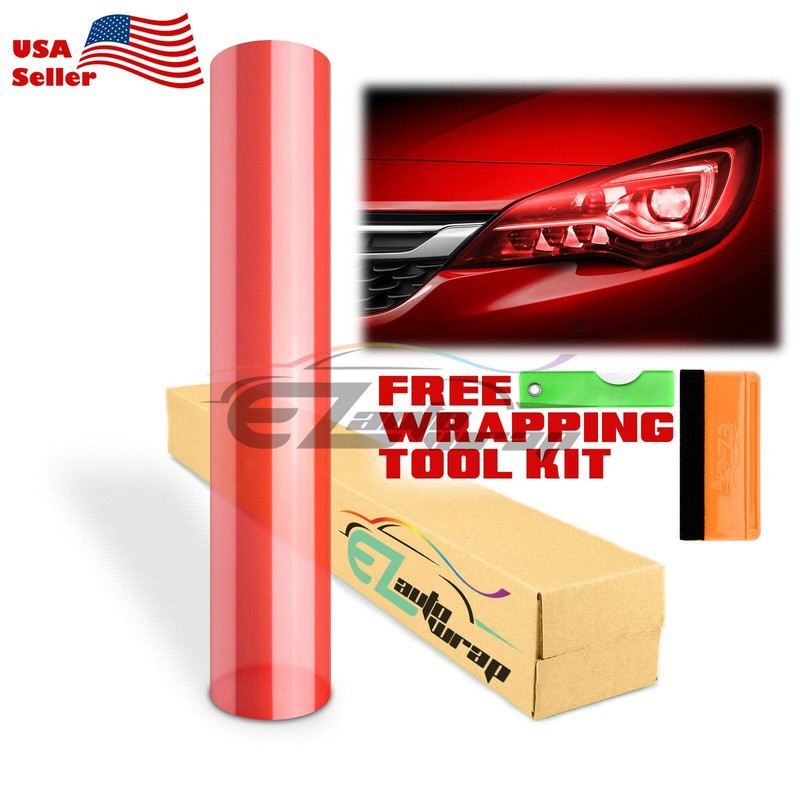 EZAUTO WRAP Free Tool Kit 12"x108" (1FT x 9FT) Glossy Red Headlight Taillight Fog Light Side Marker Vinyl Tint Film Self Adhesive