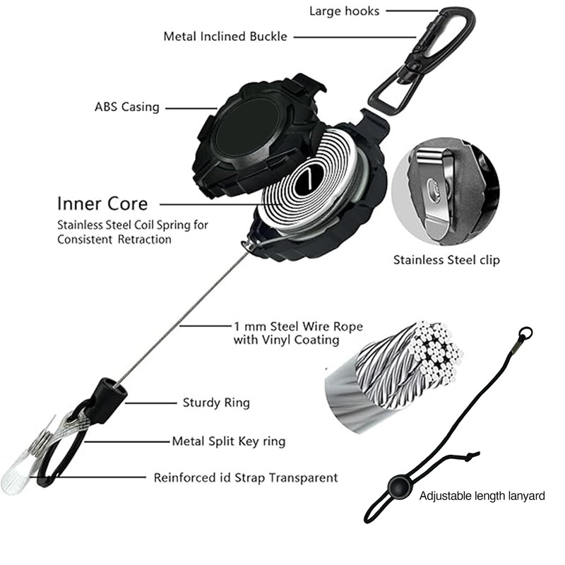 - Heavy Duty: The retractable reel features a sturdy polycarbonate shell, with a 46% increase in strength compared to ABS casing, making it more robust and durable. It won’t easily break even if dropped or bumped frequently. The heavy-duty carabiner is made of high-quality zinc alloy