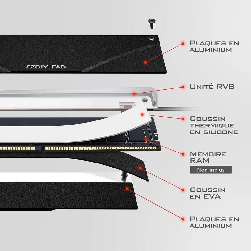 EZDIY-FAB 5V ARGB RAM Cooler DDR Heatsink for DIY PC Game Mod DDR3 DDR4 Plating ARGB Lighting Bar (Compatible with Asus Aura Sync, Gigabyte RGB Fusion and MSI Mystic Light Sync)-1 Pack