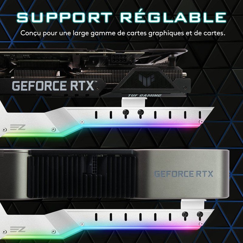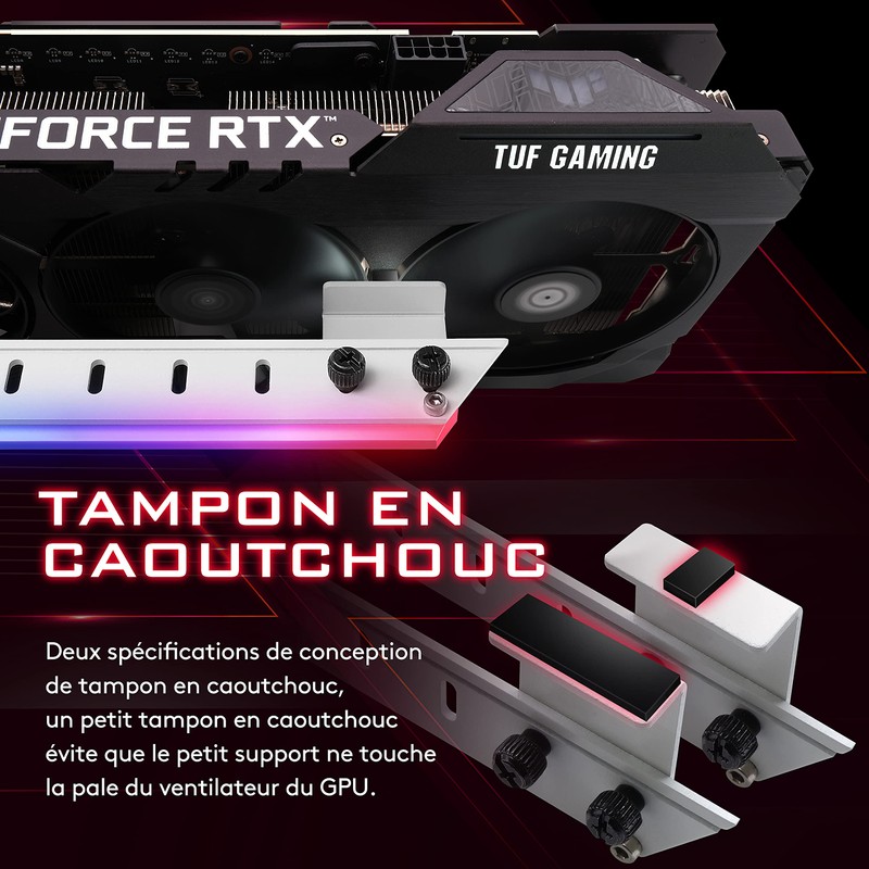 - The universal design of the bracket arm provides easy adjustment for a variety of combinations of graphics cards and PC cases.