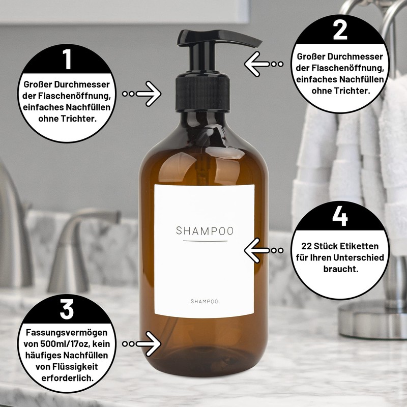 - 3 PACK: This pack contains 3 extra thick 500ml PET plastic bottles, 3 wall brackets with adhesive and 22 waterproof labels.