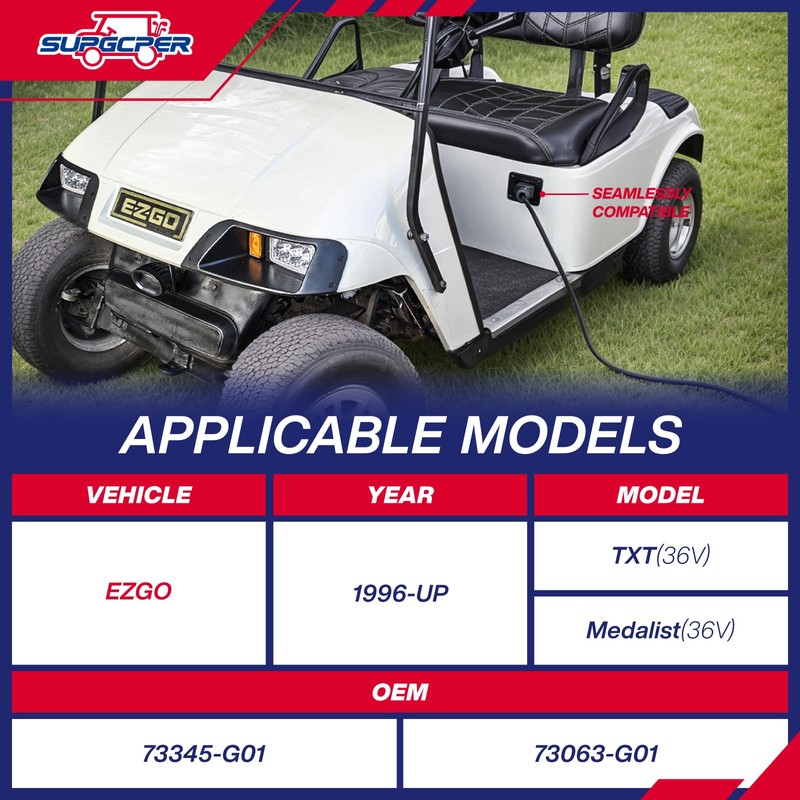 - [Suitable Models]: Golf cart PowerWise charging receptacle and plug compatible with 36V EZGO TXT Medalist DCS/PDS 1996-up electric, make sure your model is compatible before purchasing