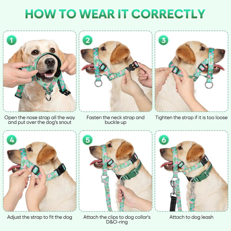 • EFFICIENT FOR NO-PULL SOLUTION - This headcollar for dogs provides the ideal solution for you, the nose loop shares the pressure on the throat in many directions, which rescues dogs from potential choking and vomit risks, and enable them to gasp, eat, and also drink freely. At the same time, it helps you to easily control your dogs during daily walks.