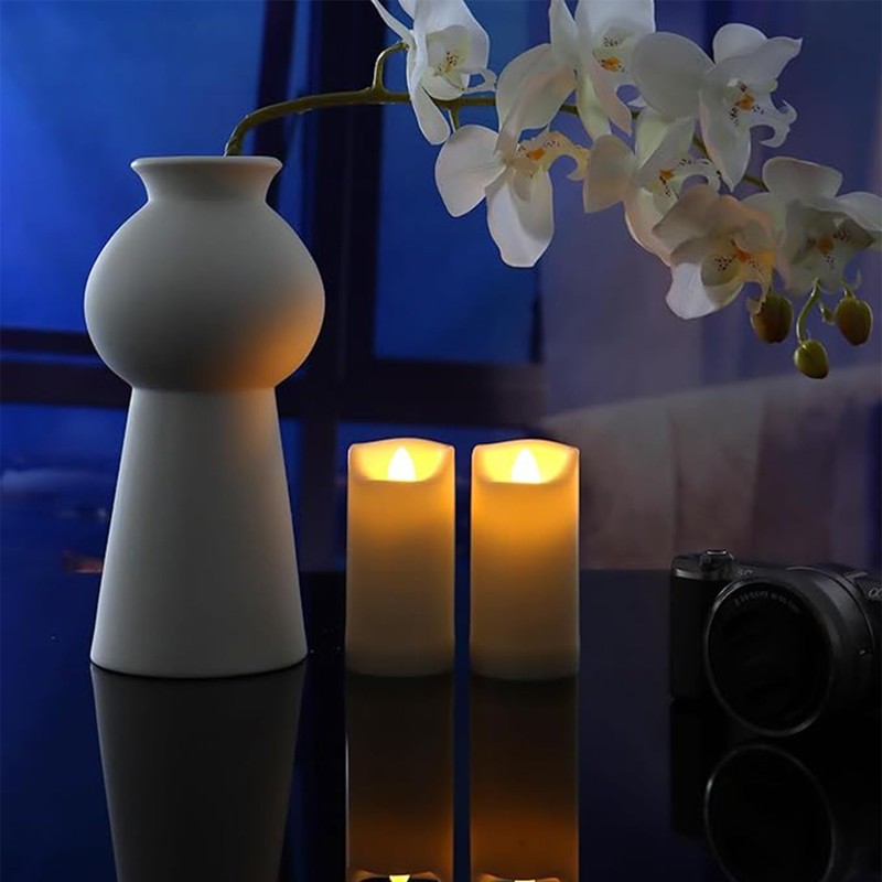 - Product Details: Includes 2 LED flameless candles of the same size, 2 inches in diameter and 4 inches in height, and a 10-key remote control. Each candle requires 2 AA batteries(Not Included), remote requires 2 AAA(Not Included)