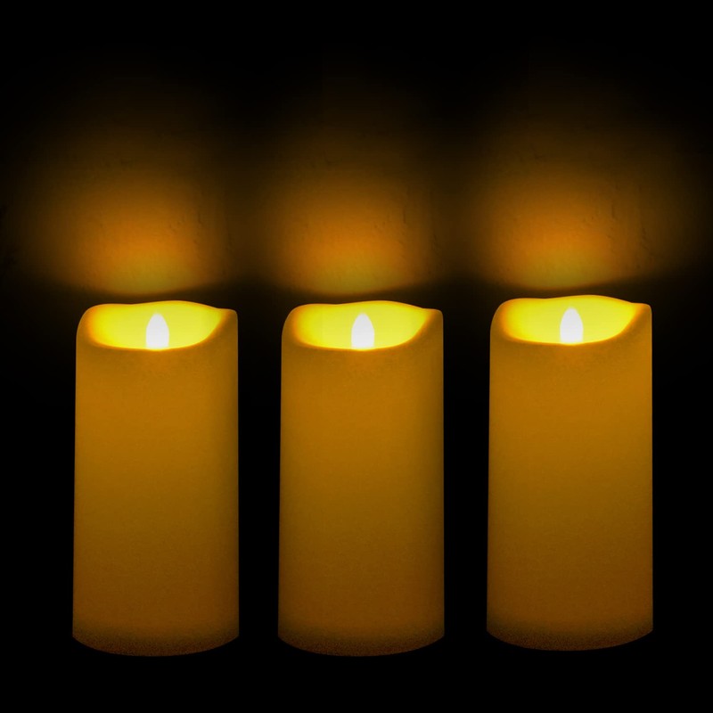 5. Battery required: Each pillar candle and remote requires 3 AA batteries (not included).