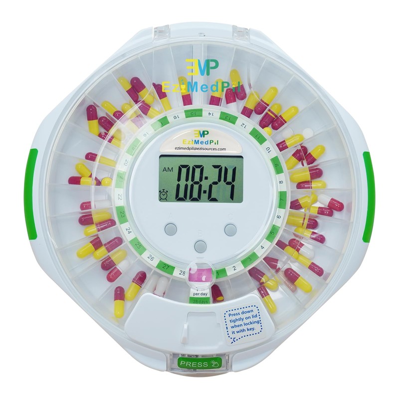 EZIMEDPIL automatic pill dispenser with clear lid provides ezi way to check your dose status when user is weaksight.