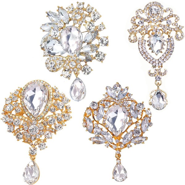 - Quantity: You will receive 4pcs mixed style brooches in a lot, each measuring approximately 3 inches in size. Rhinestones crystals are absolutely bright and sparkly, shining and stunning.