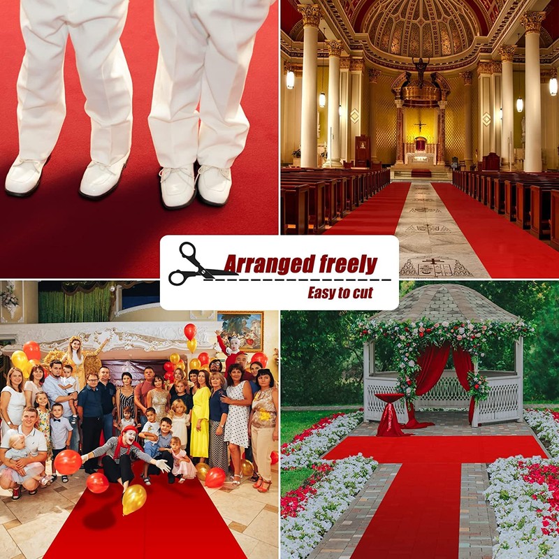 - 🎉WIDE APPLICATION: Our red carpet runner for party are suitable for indoor and outdoor use. It can be used as a prom carpet runner, Hollywood red carpet runner, movie theme party runner, graduation party carpet or aisle runner for wedding ceremonies