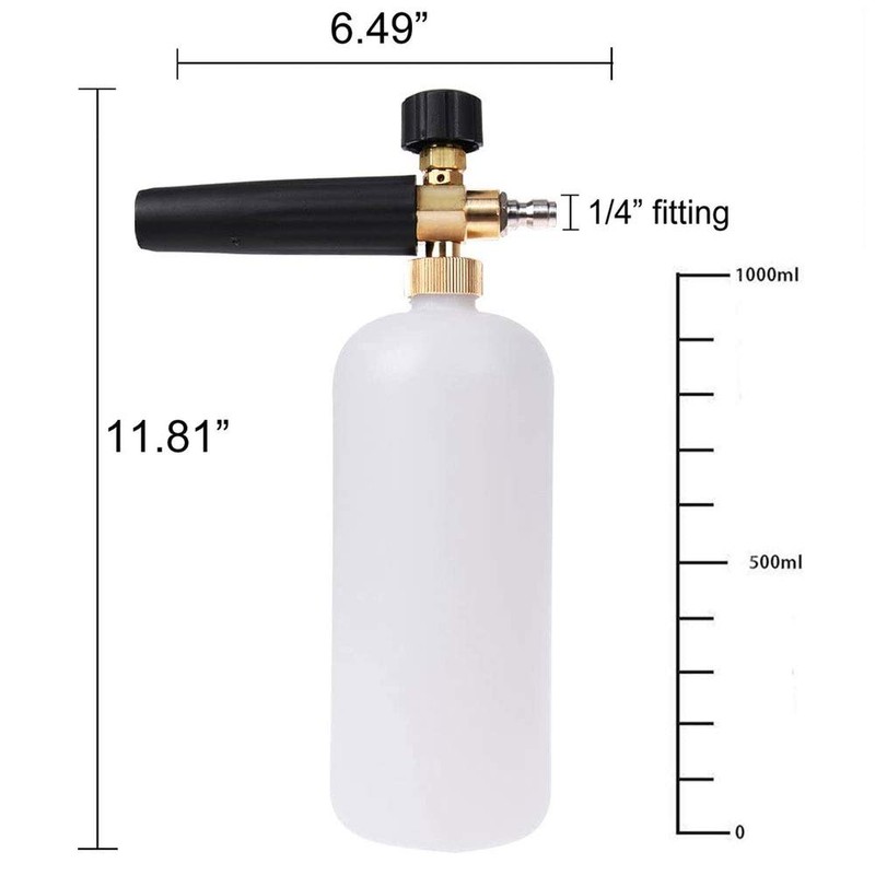 • ★Lanza de espuma de nieve ajustable con ajuste de desconexión rápida de 1/4 pulgadas. Capacidad del contenedor: 1 litro / 0.22 galones. Especificaciones: 1000 PSI a 3000 PSI.