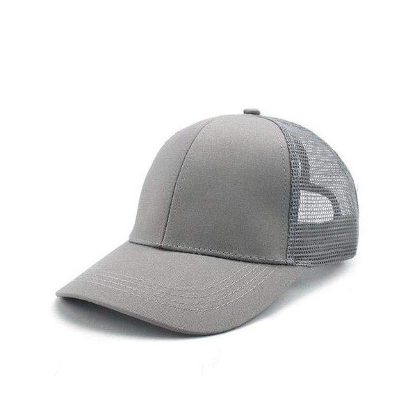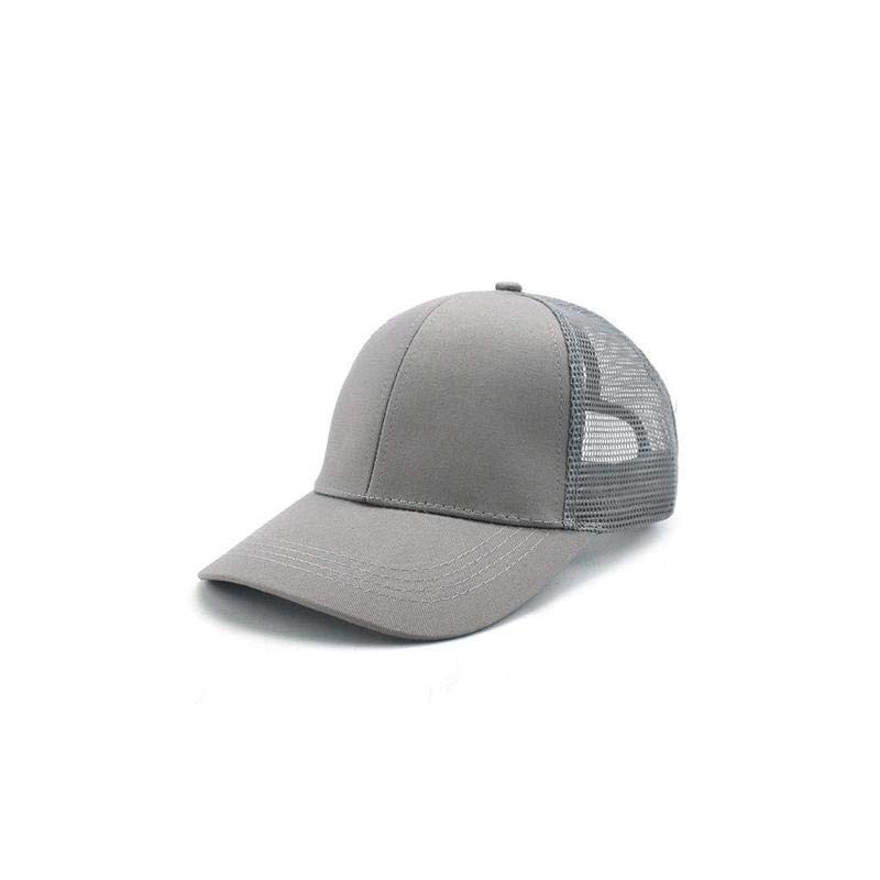 Ezone Ponytail Baseball Hat Ponycap Adjustable Trucker Style Messy High Bun Cap Mesh Plain Cap Dad Hat for Women Grey