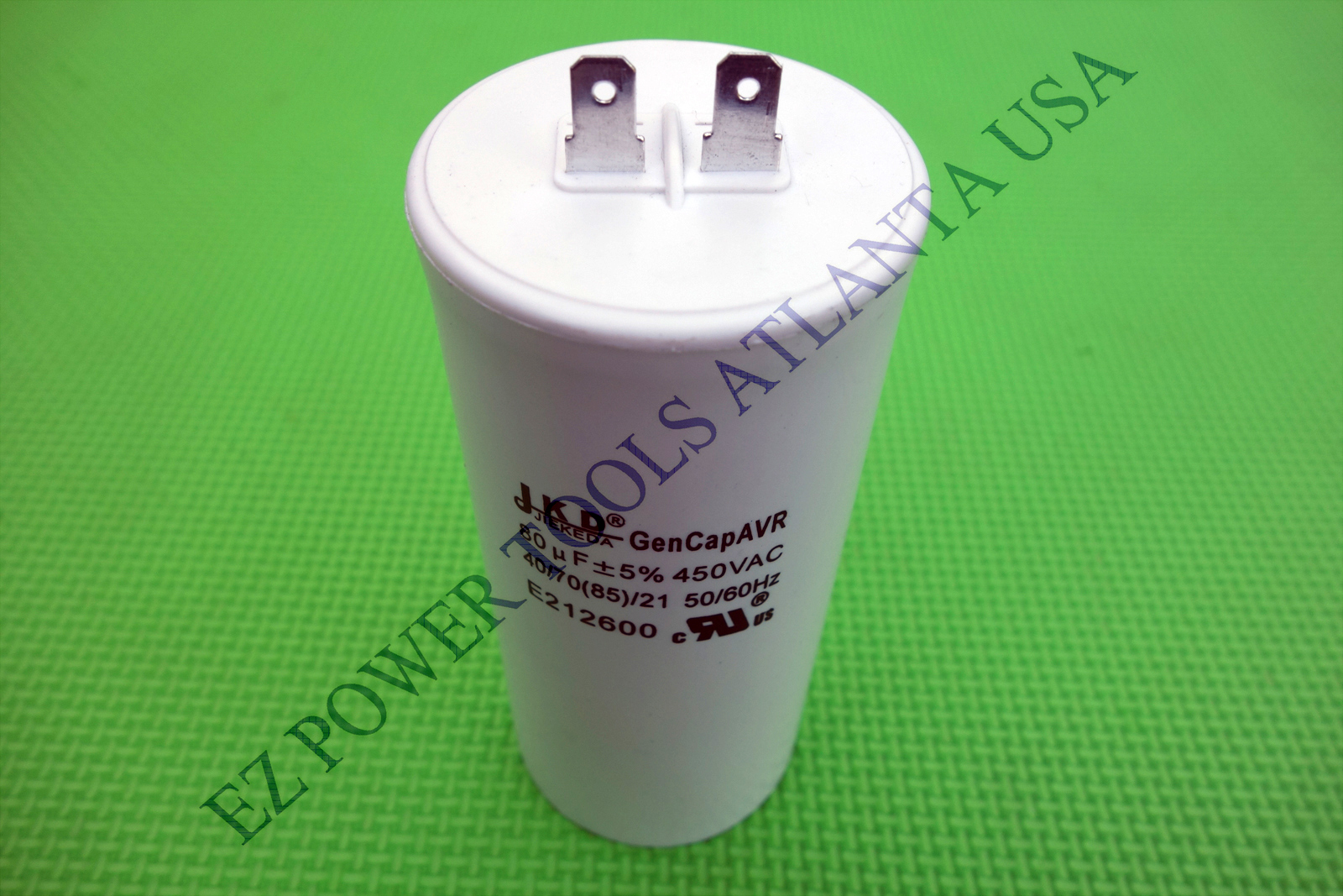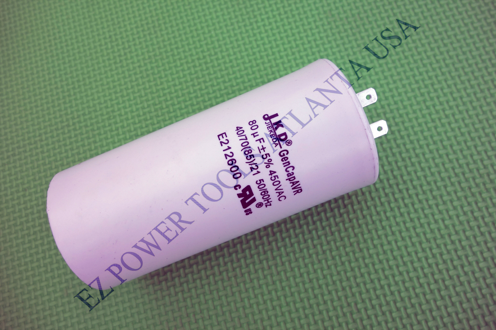 Premium UL Certified Polypropylene Film 80uF/80MFD 450VAC 50/60 Hz Generator Capacitor AVR for Dayton Branded 20HP 10000 Watt/10KW Gas Generator Model 3WY47. Our product is encapsulated with resin and housed in a self-extinguishing polypropylene plastic case for reliability and fire protection.