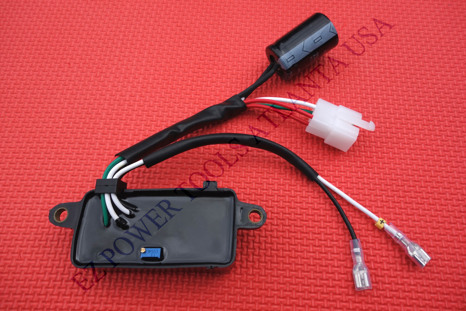 2) our AVR has an external condenser(capacitor) for easy maintenance or troubleshooting while a Suzuki OEM AVR may have a built-in condenser; however, the condenser difference does not affect the high performance of our AVR on your generator at all.