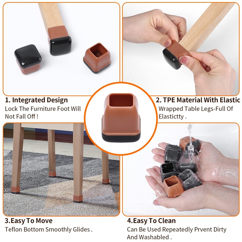 - ☛【Not Easy To Fall Off】- Clear Square Silicone Chair Leg Floor Protectors for carpted floors is made of premium Thermo-Plastic-Elastomer material, which is durable and stretchable. Table Leg Covers and felt are integrated as body so felt felt will never detach!
