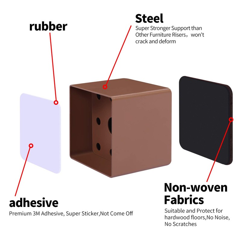 - 【Multifunctional Accessories on Most Furniture】4-piece furniture raisers be suitable for square furniture legs, used to raise desks, chairs, sofas, caster furniture and beds. Its strength can handle heavy furniture and protect your floor, providing you with storage space.