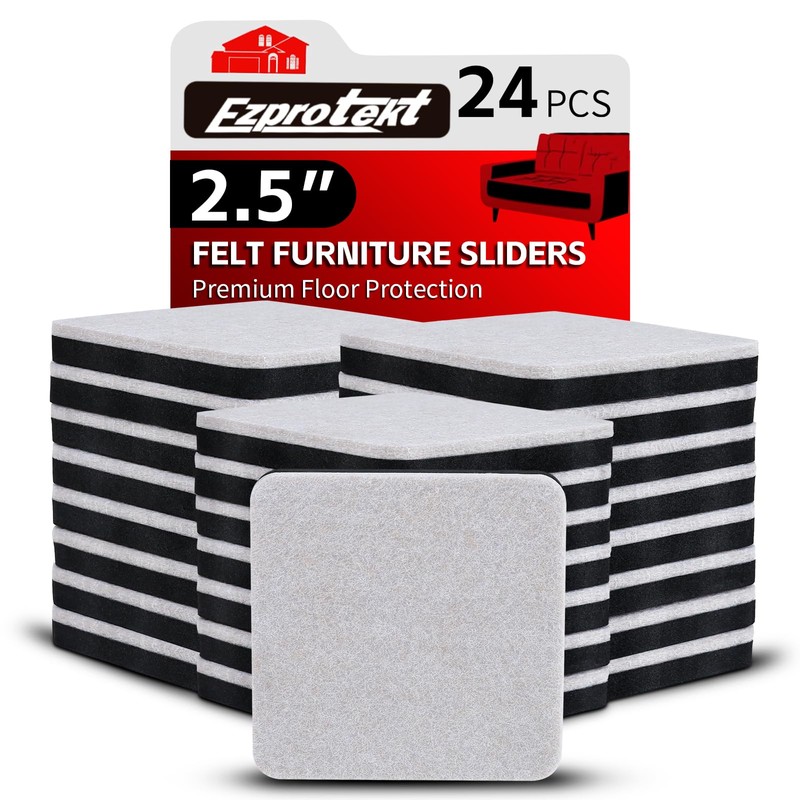 Ezprotekt Furniture Gliders, Pack of 24 2.5 Inch Square Felt Furniture Gliders for Hardwood Floors, Reusable Felt Furniture Gliders, Gliders for Moving Heavy Sofas, Desks, Tables, Couchen