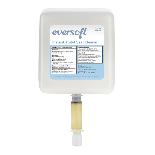 - The EZbrnd Eversoft Toilet Seat Cover Spray Cleaner Refill Cartridge is designed for hassle-free maintenance. With a pack of 6 cartridges, each containing 500ml (16.9 oz) of cleaning solution, you'll have an abundant supply to keep your dispenser stocked and ready for use.