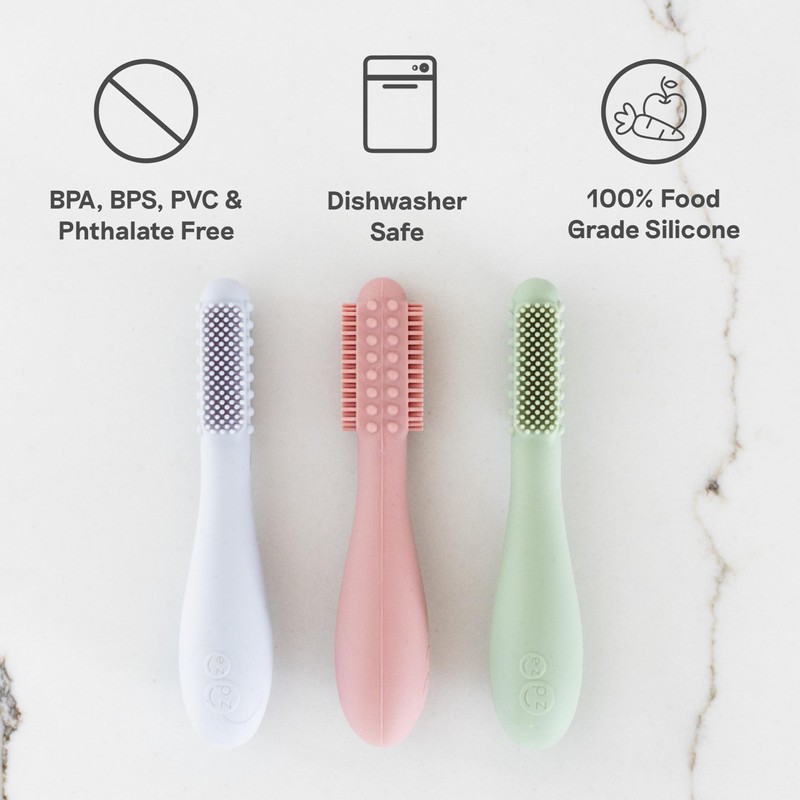 ezpz Baby-Led Toothbrush - 3 Months+ (Blush) - 100% Silicone Infant Toothbrush with Sensory Bumps - Cleans Gums + New Teeth - Improves Hand-to-Mouth Coordination, Self-Feeding Skills