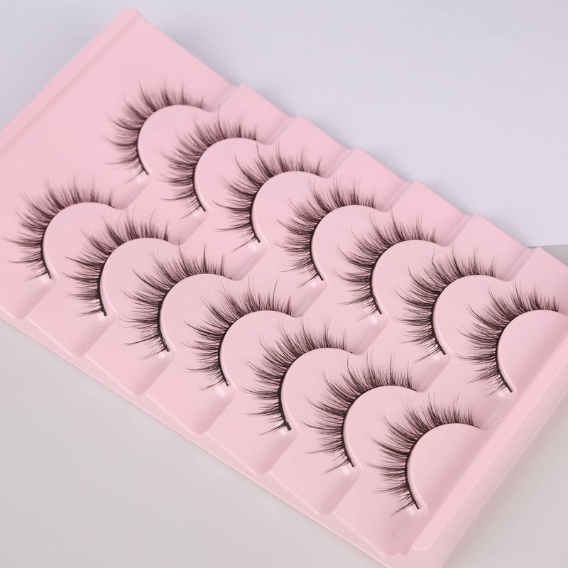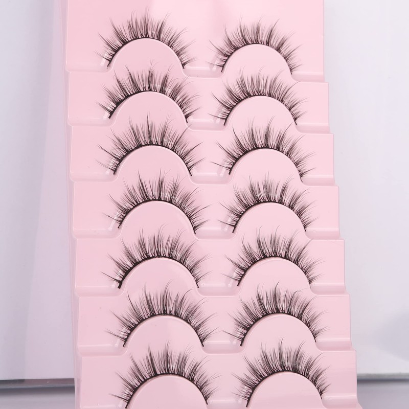Ezreiily False Eyelashes 3D Natural Look Wispy Eyelashes Manga Spiky Lashes Strip 7 Pairs