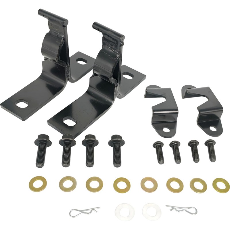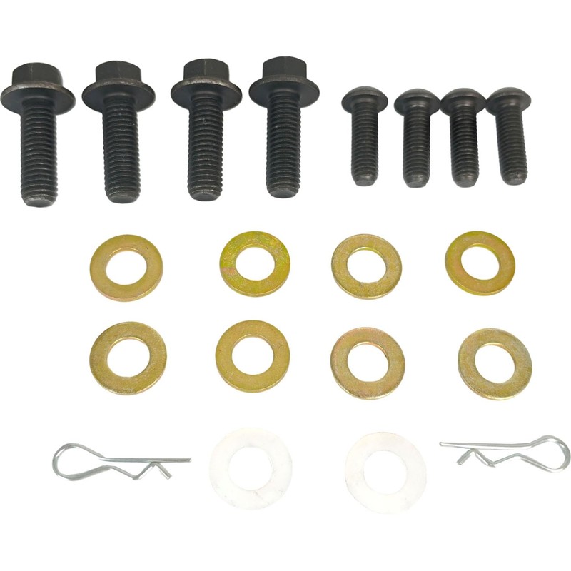 - Package List: 2X Forward Floor Brackets, 2X Rear Side Mount Brackets, 4X Flange Bolts, 4X Button Head Socket Screws, 8X Yellow Washers, 2X Nylon Washers, 2X Pins