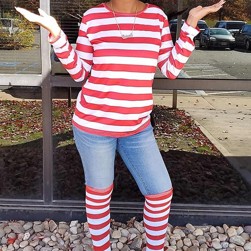 Ezsskj Where's Waldo Costumes Womens Red and White Striped Shirt Adult McDonald Wenda Cotton Costume