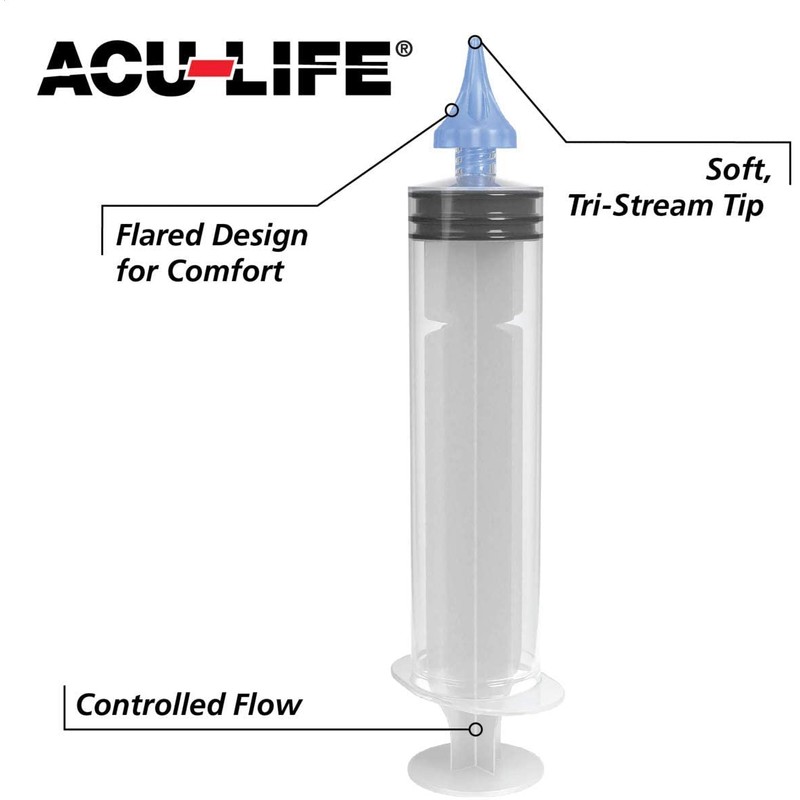 bulb ear syringe due to its Flared Design, Tri-Stream Tip, and Exit Portals.