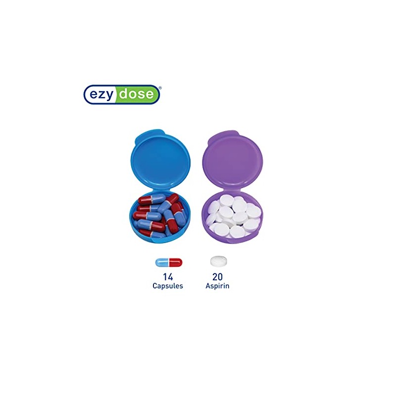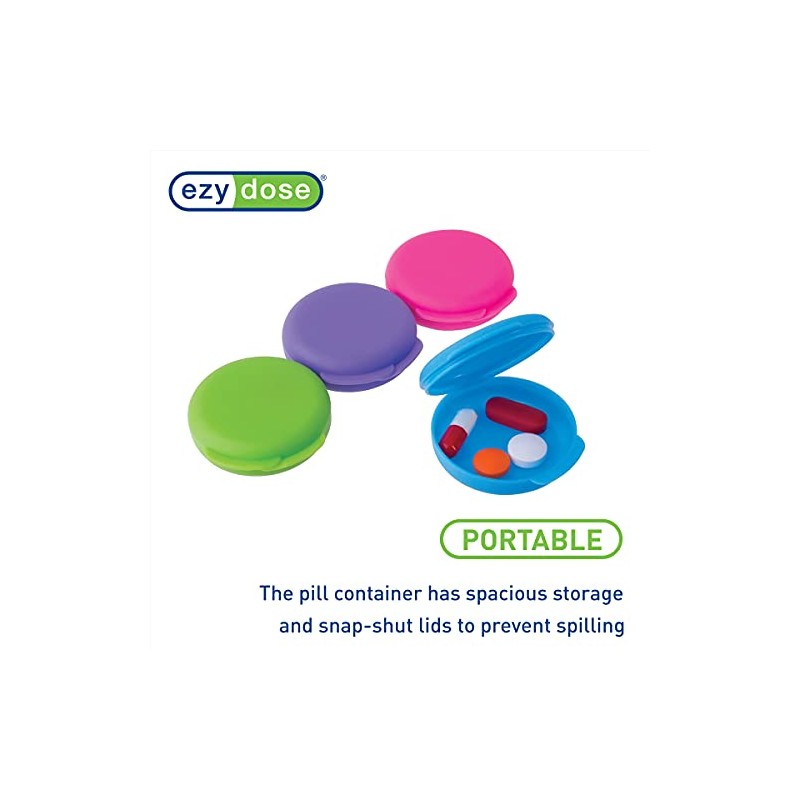 Ezy Dose Daily Round, Portable On-The-Go, Pill Box, Organizer and Vitamin Containers, Snap Shut Lids, Perfect For Traveling, Colors May Vary, 2 Pack