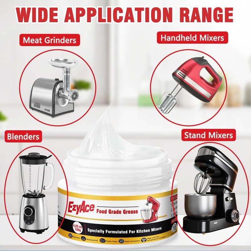 - Prevent Aging in Stand Mixers: EzyAce food grade grease can prevent critical components' wear, corrode, and rust, to extend your appliance's lifespan. Using food grade grease for kitchenaid stand mixer also significantly lowers operational noise, ensuring a quieter kitchen environment.