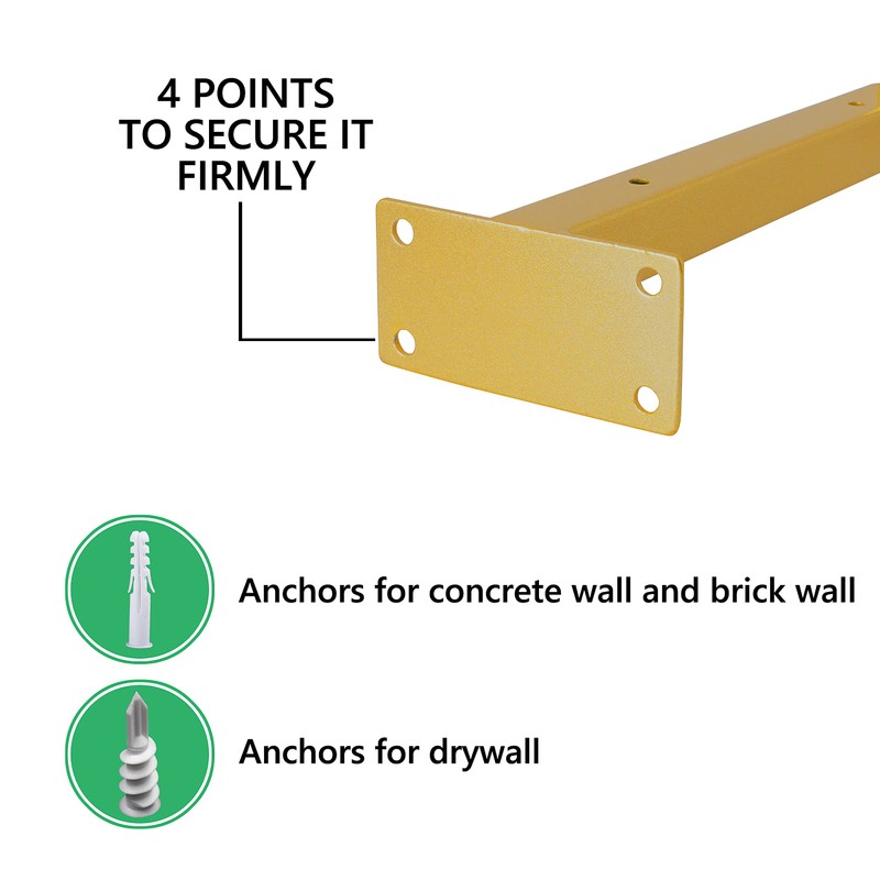 - Come with all hardwares you need, concrete plugs x 30, dry-wall plugs x 30, gold self-tapping screws x 42. Please use different plugs accordingly.
