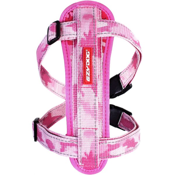 EzyDog Premium Chest Plate Custom Fit Reflective No-Pull Padded Comfort Dog Harness - Perfect for Training, Walking, and Control - Includes Car Restraint Attachment (Large, Pink Camo)