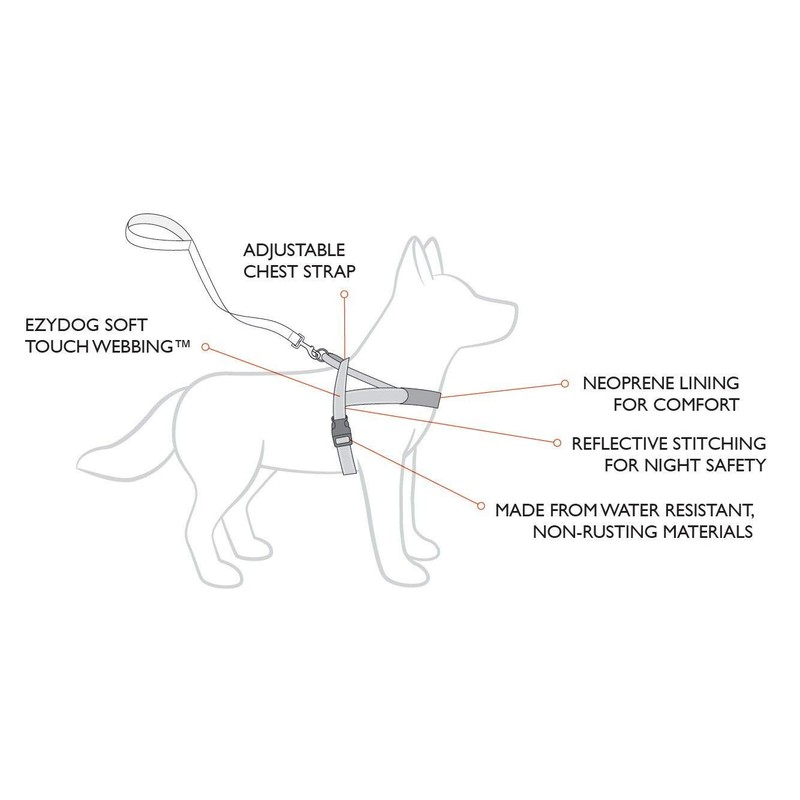 - SIMPLE ONE-CLICK FIT SYSTEM - Patent Pending EzyDog One-Click Fit System lets you know if you have the right fit without the frustrations fitting other harnesses can cause.