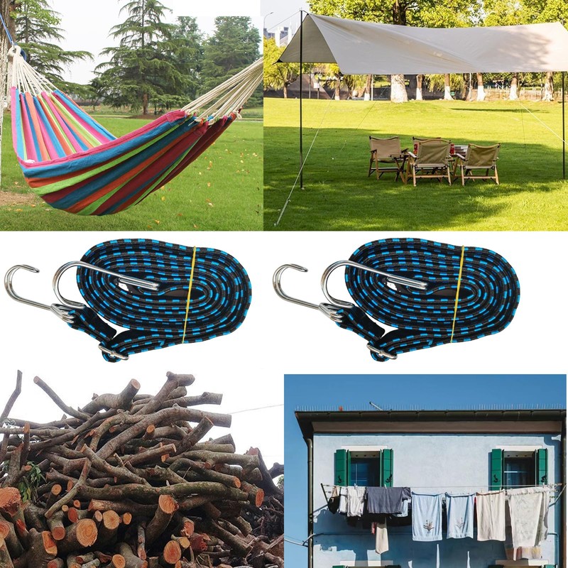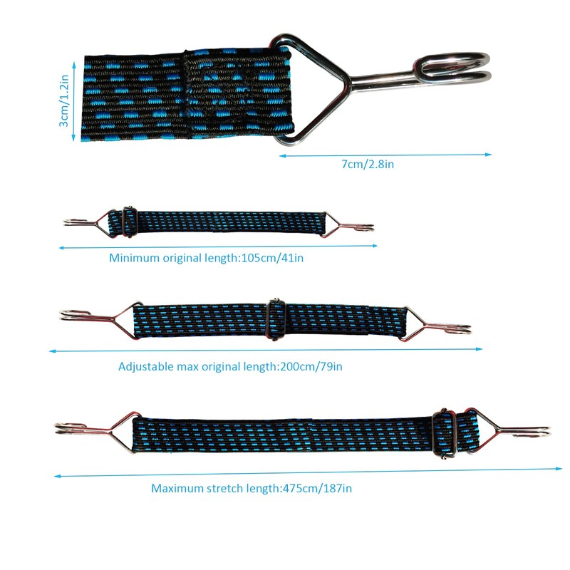 - Package Includes: 4 Pack 79in adjustable flat bungee cords with hooks,Blue.