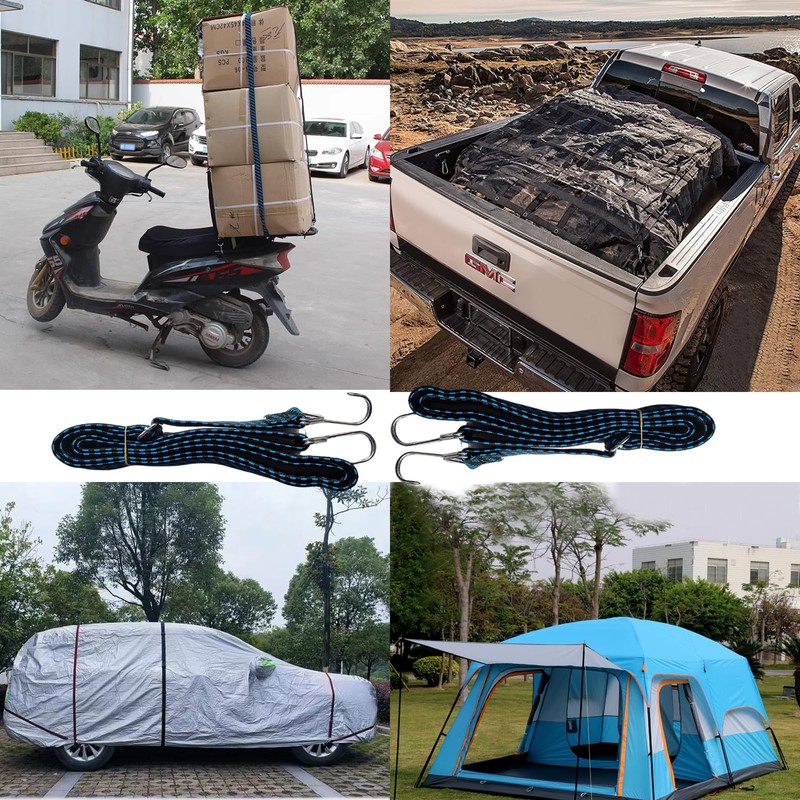 - Widely Used: These bungee cords are suitable for different needs, the length can be adjusted freely according to the size of the item, perfect ofr moving boxes, fixed luggage, fixed tents, hanging clothes, roof racks, trolleys, motorcycles, cars and vans, etc.