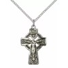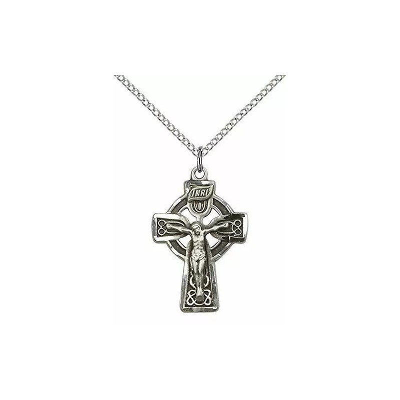 Sterling Silver Celtic Crucifix Pendant with 18" Stainless Steel Lite Curb Chain. Includes deluxe flip-top gift box. Medal/Pendant measures 1" x 5/8".