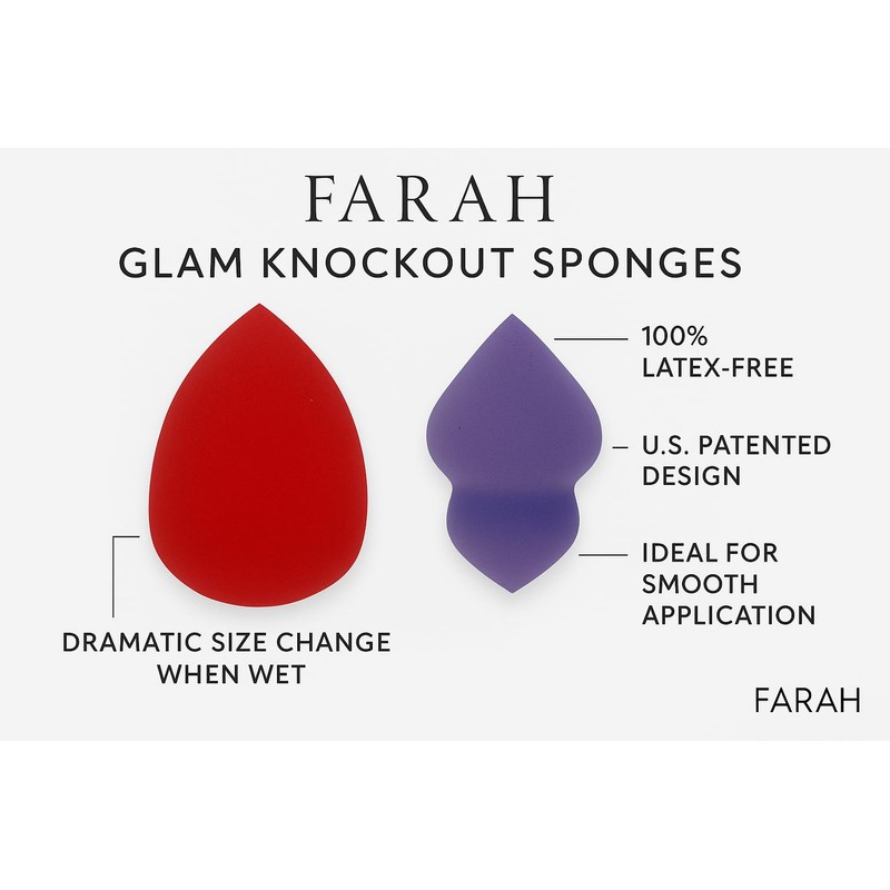 F.A.R.A.H Glam Knockout Makeup Sponges (2-Pack) – Latex-Free Foundation Blending Sponges – Purple & Red – Expands When Wet – Smooth, Streak-Free Finish