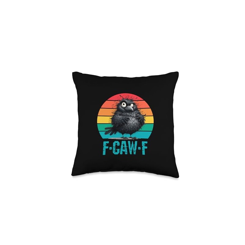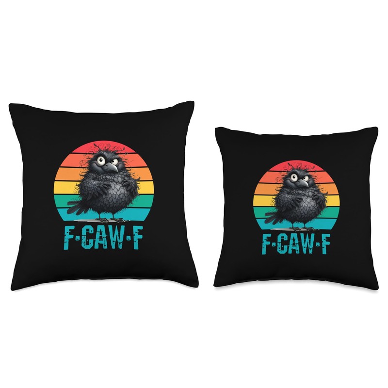 F-Caw-F Black Crow Black Bird Retro Sunset Vintage F-Caw-F Throw Pillow