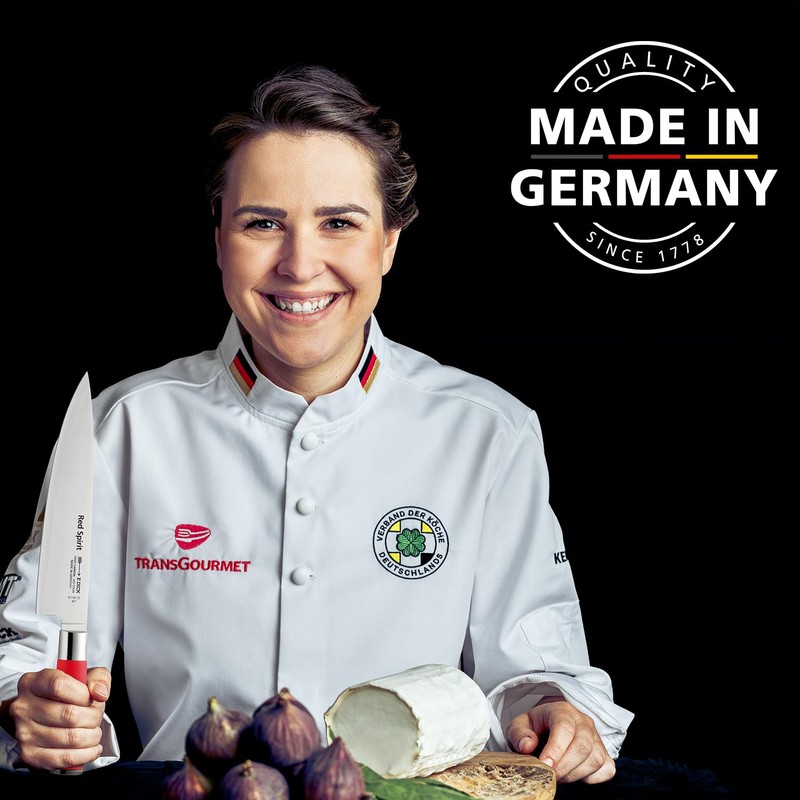 - German Engineering Excellence: Every Red Spirit knife is a testament to superior German craftsmanship. Manufactured entirely in Germany, each knife undergoes numerous meticulous production steps at our Deizisau facility, from steel processing to the final blade finishing. This commitment to quality ensures that every knife meets the highest standards of precision, durability, and performance, embodying the best of both Asian craftsmanship and German engineering.