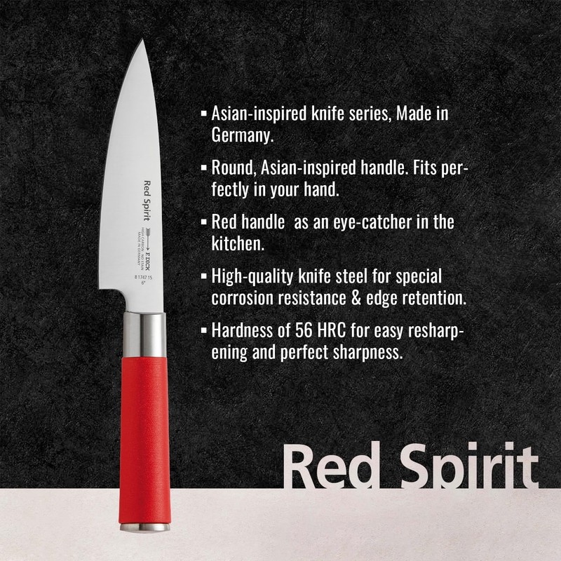 F. DICK - Red Spirit Chef’s Knife - Kitchen knife with 5.9’’ blade & 56 HRC - Ideal for precise cuts - Versatile knife - NSF Certified - Ultra sharp - Ergonomic handle - high carbon - Made in Germany