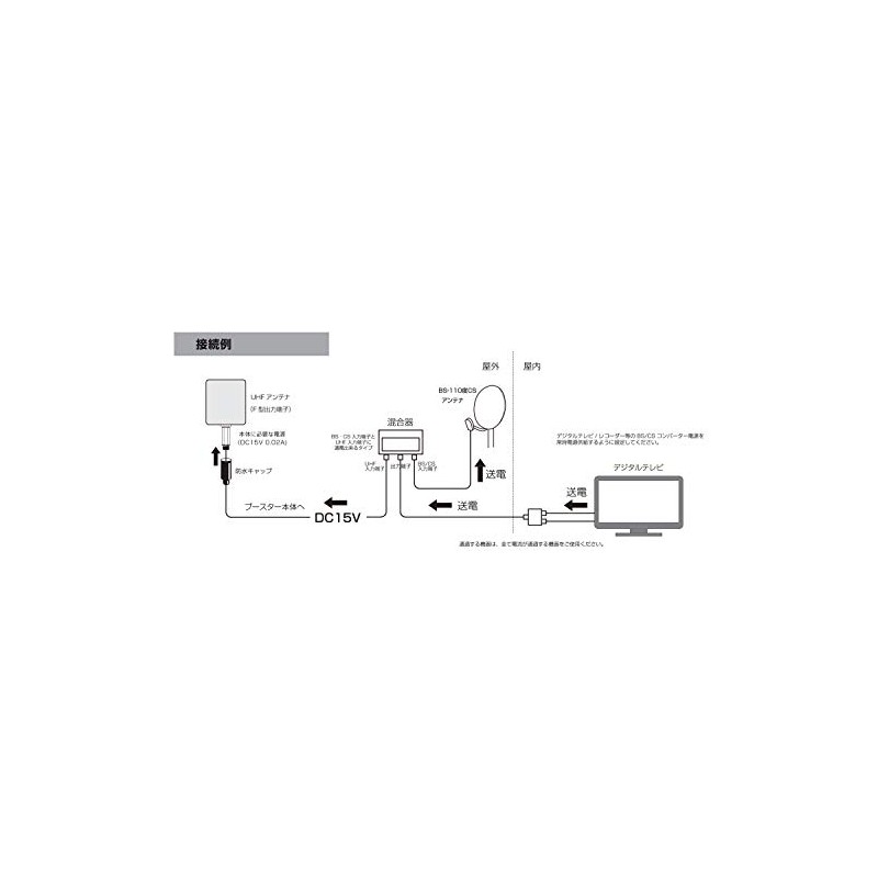 • If the radio wave reception is poor, it may not be effective even when using the same product. Only for UHF Power supply is required (power supply not included), please use a coaxial overlapping DC power supply