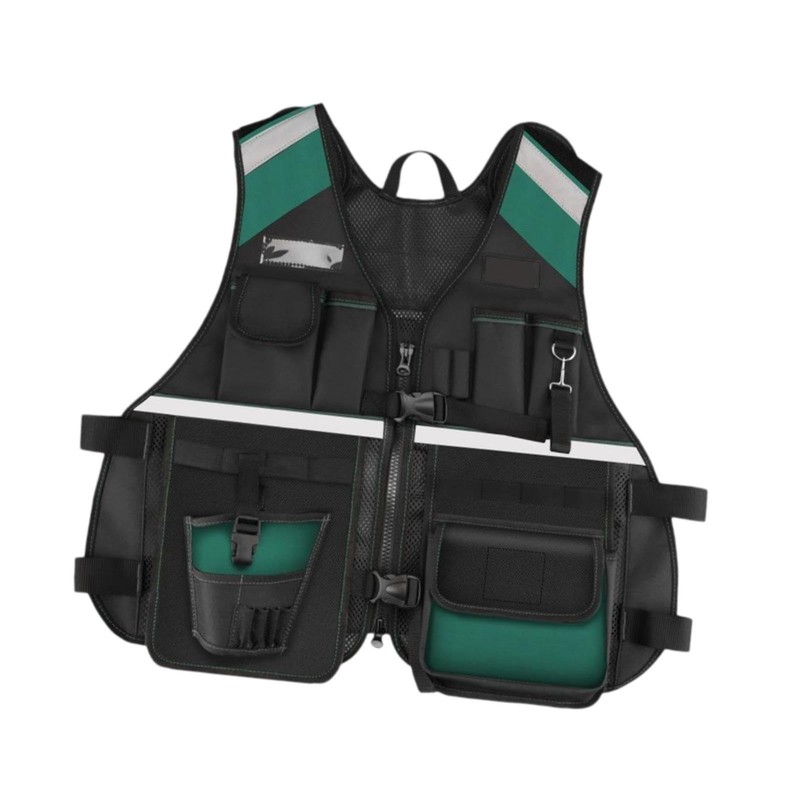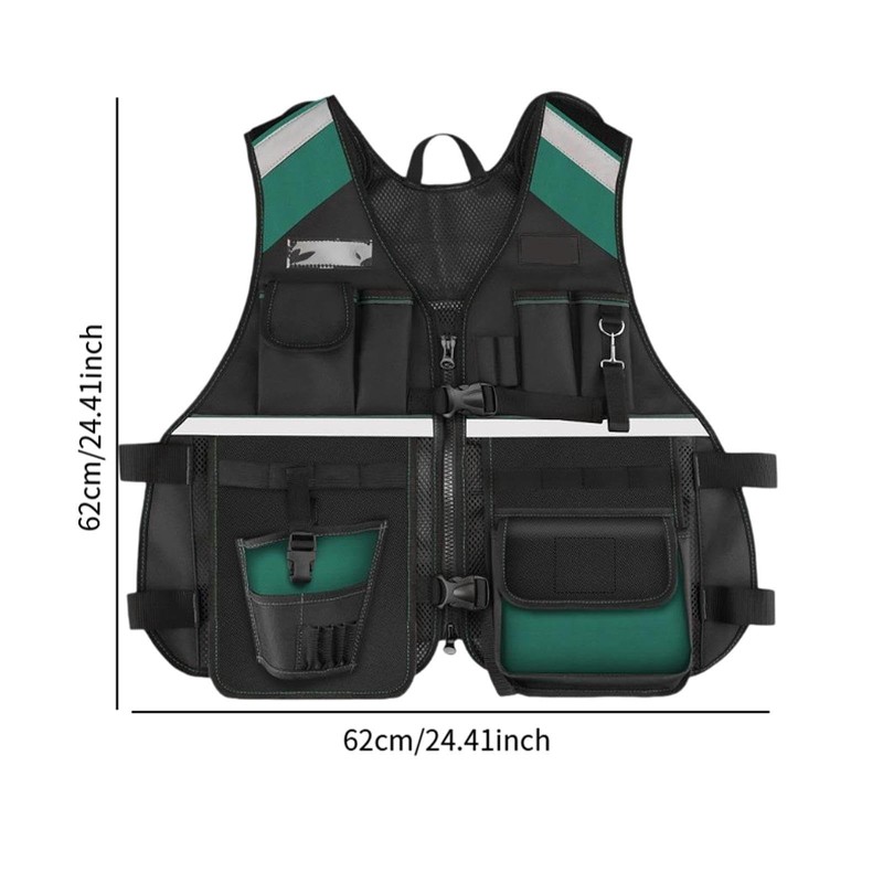 - Material: Multifunctional tool vest for electricians, carpenters, and maintenance workers, made from Oxford cloth, wear resistant, sturdy, lightweight